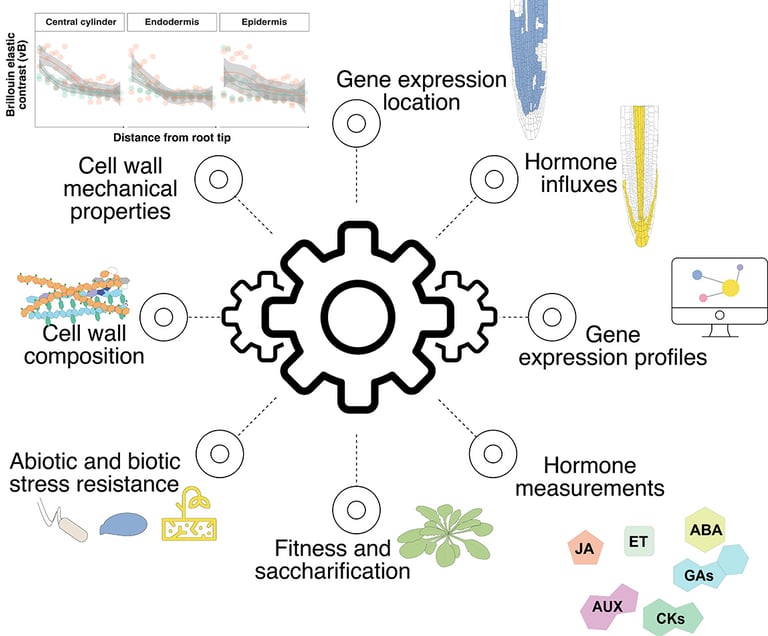 Understanding the relationship between cell wall composition and mechanical characteristics: We investigate how the composition of cell walls changes during plant development and interaction with the environment and how these changes affect their mechanical characteristics.