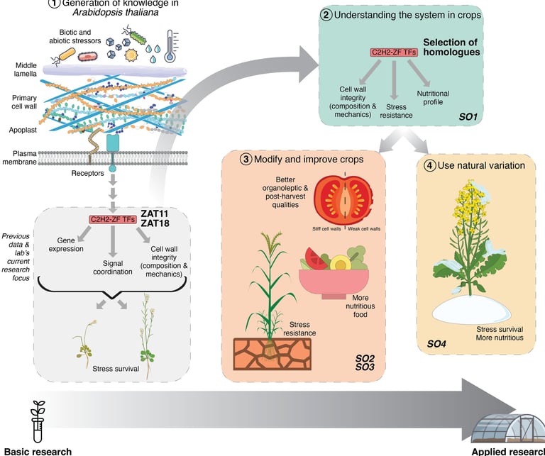 Our project explores how C2H2 zinc finger (ZF) transcription factors regulate cell wall composition, stress resistance, and nutrient bioavailability. By studying agriculturally important crops like rapeseed, tomato, and barley, we aim to: