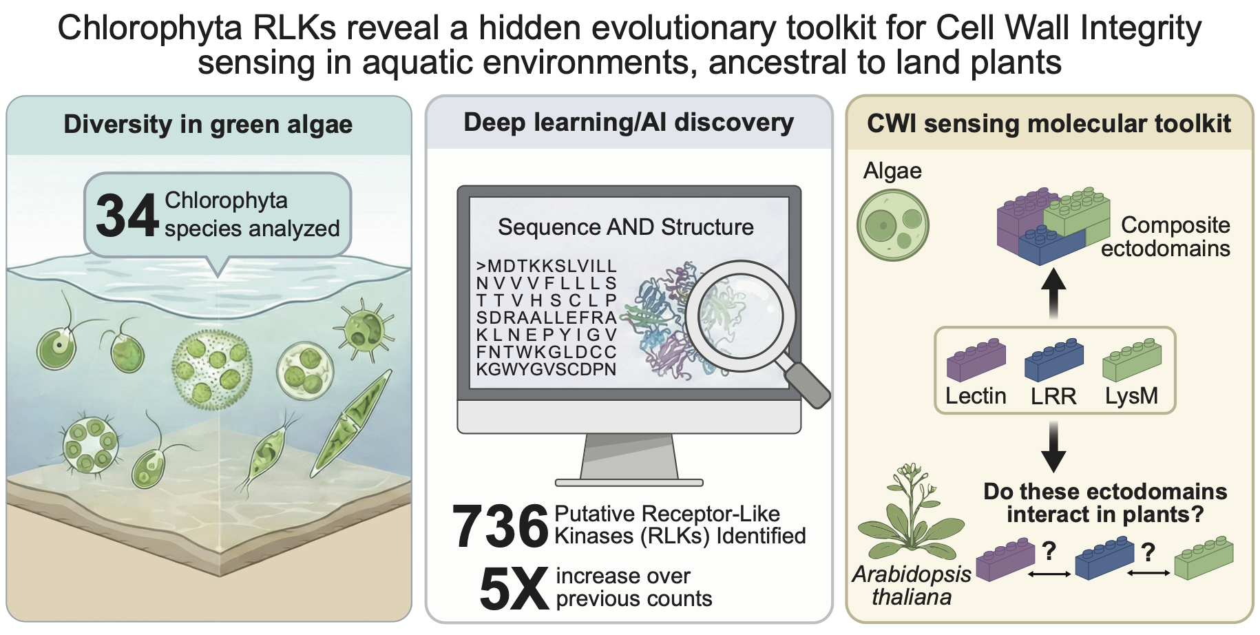 Our work not only broadens the catalog of RLKs in Chlorophyta but also establishes an exciting framework for future studies on their roles in cell wall perception and signaling — helping us understand how these systems evolved to the complex receptor networks we observe in terrestrial plants today.